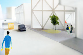 8つの棟をつなげながら分けていき、美術館が大きなそぶりで働きかけるのではなく、8棟が折り重なる間に入ってみたくなるようなすき間を、いろいろなところにつくりだしています。市役所や銀行、会社や学校の帰り道に自然に立ち寄れるように、街中からバリアなく美術館の中を通り抜けができる道もあります。