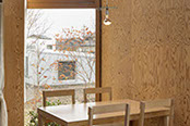 "食堂のはなれ"は、キュビズム的な家の精郭と大きさによって遠近の深度をゆるがし、散在する同じ大きさの窓は異なる視座をつくりつづける。「認識の主観」は、事物の対象化をすりぬけ内省をくり返し、ここにしかないここではない場所を想う。