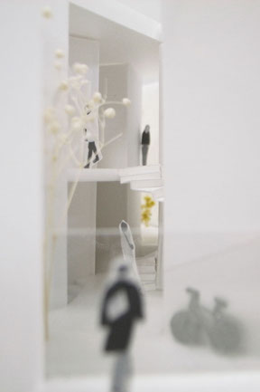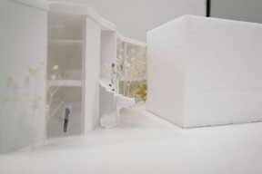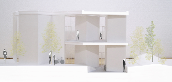 奥沢に計画した集合住宅です。奥沢駅から南東に向けてグリッド状の道路に斜めに通る道がのび、その通り沿いには敷地に三角の余白が残り、緑が植えられていたり自転車が置かれていたり、街に自然なゆとりと豊かさを提供していました。