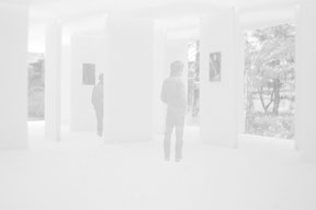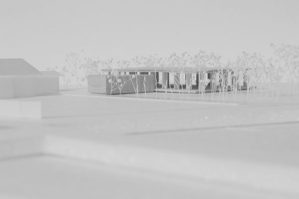 宮城県の小牛田町に計画した民間会社のためのセミナーハウスです。水田が広がり、林に囲まれた広い民家の一角にあり、東西南北には梨園、欅林、日本庭園、水田と異なる田園風景に囲まれていました。その牧歌的な風景を建物で切りとってしまわないようにしたかった。また、自習からディスカッション、レクチャーまで、ひとりでいるときの落ち着きと、たくさんの人でいるときのにぎわいが共存できる居場所を考えて「城東町の家」の「JOTO MODEL」を発展させて、「閉じる」と「開く」を同時に行う壁柱による空間環境を考えました。硝子を透して壁は建物背後の緑を映し、壁の隙間からは向こうの明るい緑まで見通せ、建物は見る位置によって緑の万華鏡のように変化します。