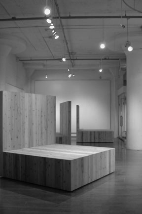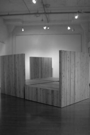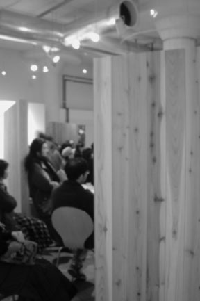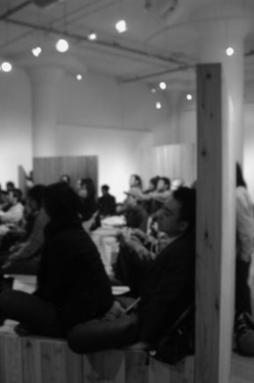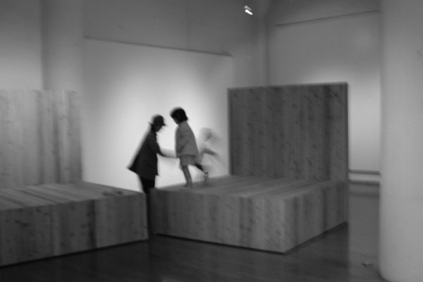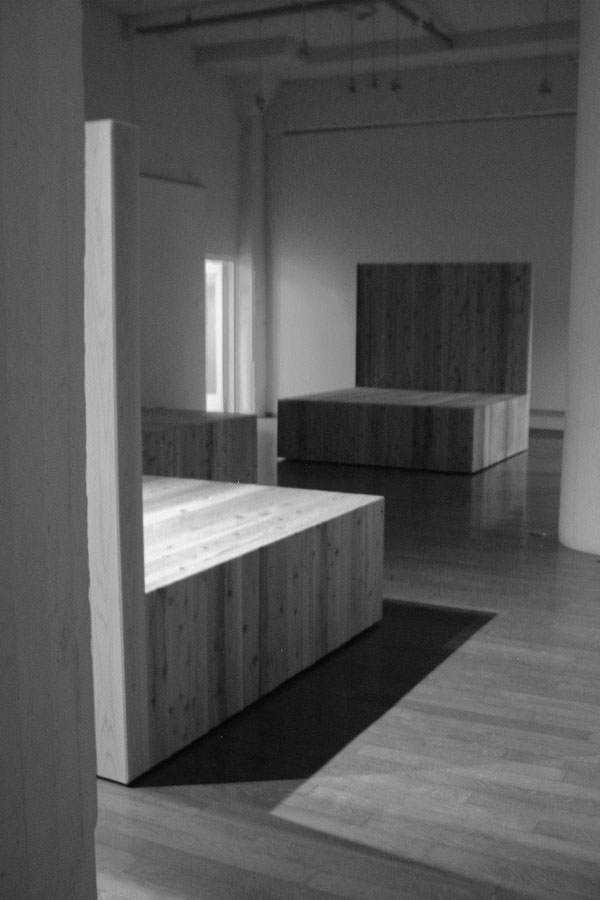 展覧会の会期中、あるときには舞台の客席、そして舞台そのものに。またあるときにはタイ式マッサージの個室空間、シンポジウムのラウンド空間、子どもたちの遊び場に。そして壁との間に路地をつくったり、休憩の腰掛けになったり。3つの「 L 」はさまざまな組み合わせによって、さまざまな人々によって使われ方を見つけてもらい、変容しつづけていきました。