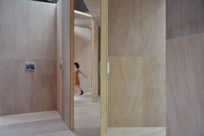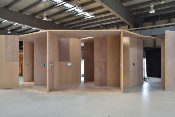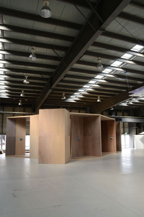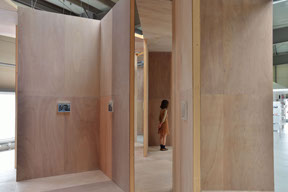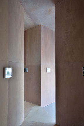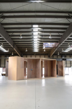 横浜トリエンナーレ連動企画で、 BankART LIFEⅢ のために新港村の展示倉庫の中に制作した家です。この家は、高さ3.64m、平面は一辺1.82mのL壁でできあがっていて「house K」と「house I」の性格を同時にあわせもっています。