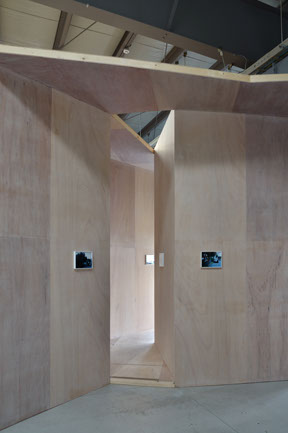 一歩あるいは半歩踏み出すたびに、その関係はダイナミックに変化して、周囲に大胆につながりながら自分の居場所(テリトリー)を確保するという、相反することが同時にできてしまう、そういう場所の居心地良さを考えて提案しています。会期中には、写真家の鈴木理策氏の展示空間としても使われました。