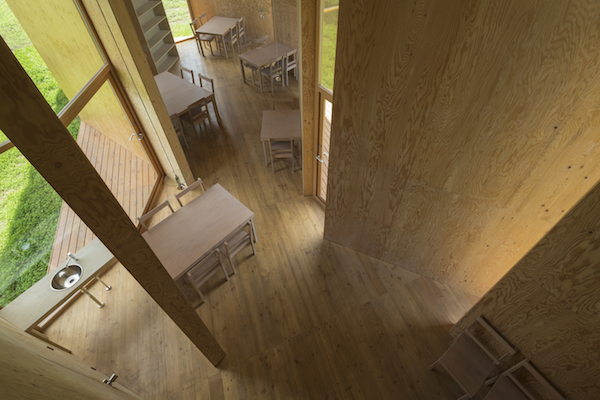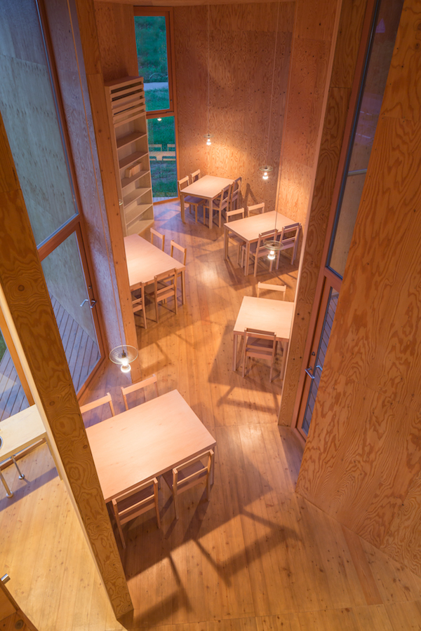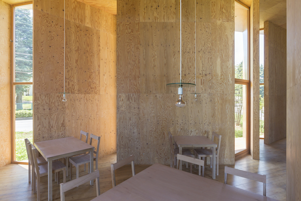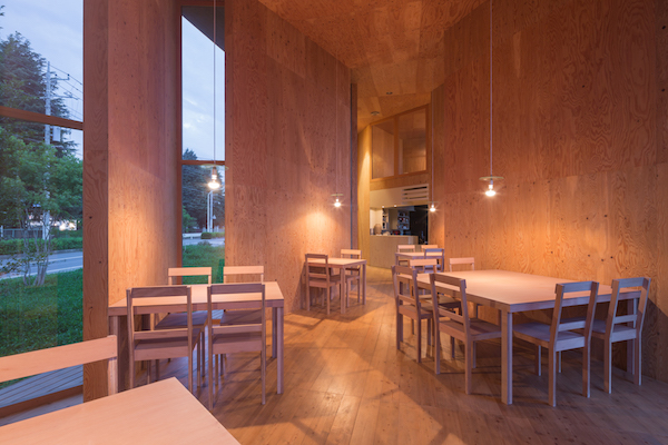 約400坪の敷地は農地から転用したばかりの更地でしたが、「那須の山荘」を気に入って依頼してくださったオーナーシェフは、将来森を育て、同じように、木の幹の中に入り込んだような温かな室内で食事を提供したいという希望でした。