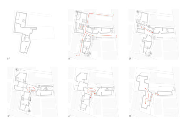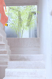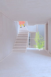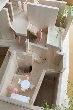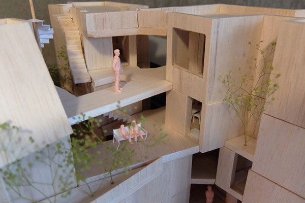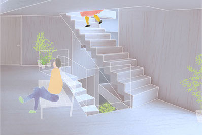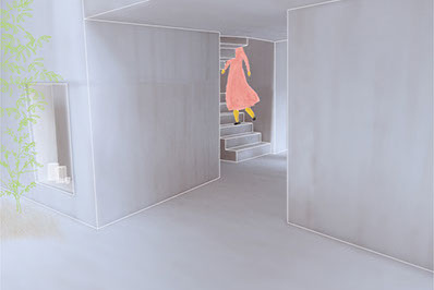 事務所の小さな庭でも、植木が四季折々を伝えてくれて、仕事をしていると子どもの遊ぶ声や道行く人の声が響いてきます。草木や人を日常的に近くに感じることができるのです。この四谷坂町に計画したコーポラティブハウスにおいても、草木や人の気配が近くに感じられる小道=「露地」の魅力を大切にして、露地のような道を進みながら各階の家まで毎日新鮮な気持ちで帰れるようにしたいと考えました。