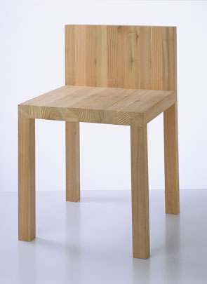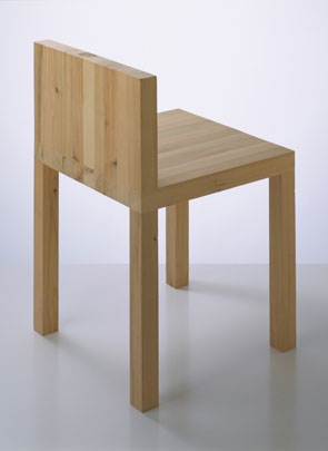 椅子の各面に板目の模様や木口の模様がそれぞれ現れて、表面的かつ物質的なありようになっています。木目固有の温かさと抽象性を兼ね備えた椅子です。